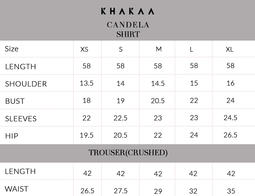 An open-front shirt with machine embroidery and hand embellishment on the neckline and body, finished with long cuffed embroidered sleeves and paired with crushed pants for movement and volume.