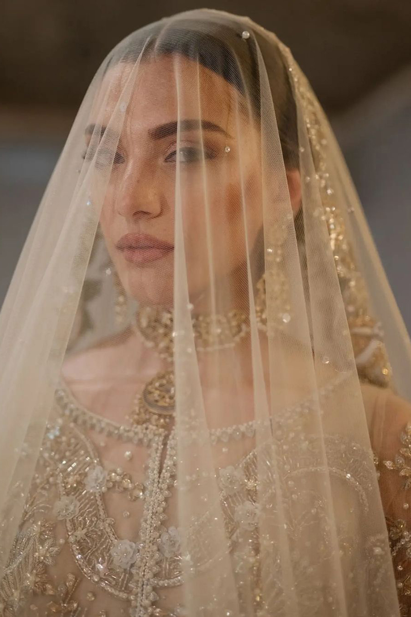 This ivory piece is an intricate yet traditional ensemble curated for the perfect occasion of wedding. Made on net fabric with the right techniques of hand embellishments on front open shirt with net dupatta with heavy borders on it. Paired with same color foil lehnga.
